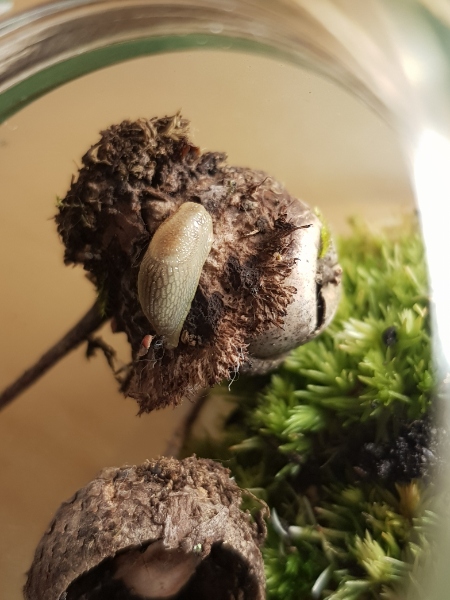 Ich habe heute im Garten ein paar Eicheln gesammelt für ein Bastelprojekt und habe dabei aus Versehen ein kleines Nacktschnecken-/Schnegel-Baby mit ins Haus gebracht! Ich weiß leider nur sehr wenig über (Nackt)Schnecken, deshalb wollte ich mal fragen, ob hier vielleicht jemand weiß, um welche Art es sich handelt (nach eigener Recherche könnte es z.B. eine Kleine Wegschnecke/Igelschnecke sein):