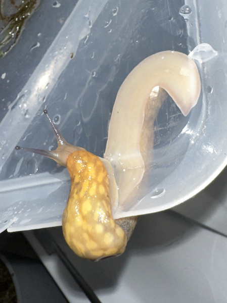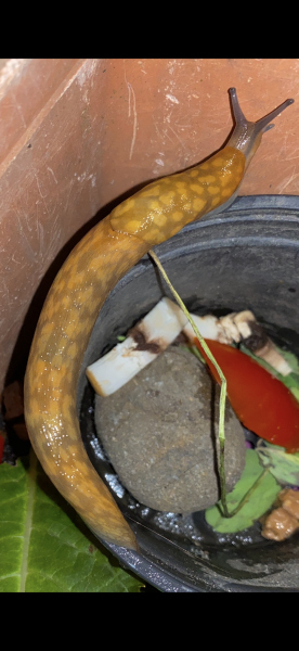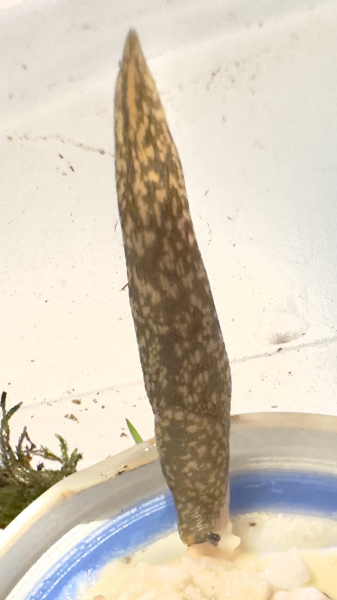 Nun meine Frage ans verehrte Publikum: Meint Ihr, dass es sich bei dem bernsteinfarbenen Schnegel auf den Bildern – er heißt Don Vito Corleone – um einen Gefleckten Schnegel (Limacus maculatus) oder evtl. sogar einen Bierschnegel (Limacus flavus) handelt?