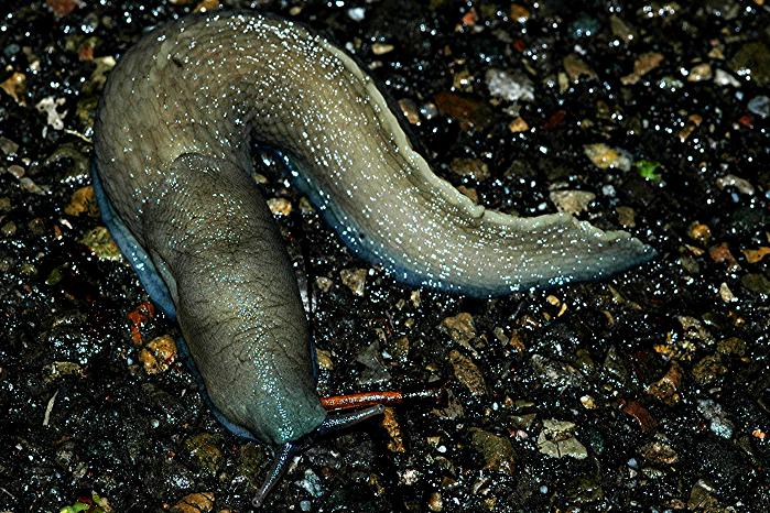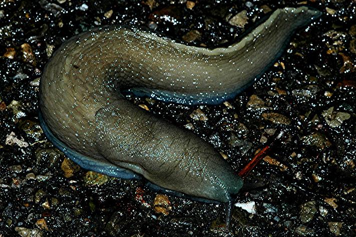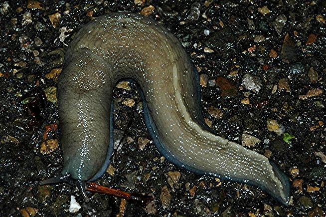 Nach meiner Literatur denke ich am ehesten an einen Schwarzen Schnegel, Limax cinereogaster. Was irgendwie nicht ganz zu paasen scheint, ist die Tatsache, daß beide Ex. sehr hell waren, also weit entfernt vom Anspruch, daß der Name schwarz berechtigt wäre. Auffällig für das Auge ist der stark abgesetzte Rückenkiel, der dann auch noch zusätzlich mit seinem Weiß kontrastiert zur restlichen Körperfarbe.