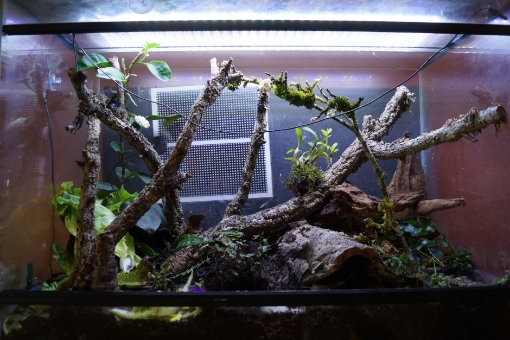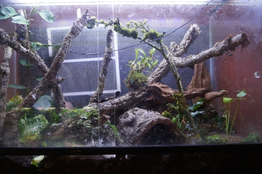 Ich habe noch keine Lösung gefunden, wie ich das Terrarium vor der Versumpfung retten, bzw der Versumpfung vorbeugen kann. Es bräuchte so etwas wie einen Überlauf (wie im Schwimmbad der Menschen) und unter dem Becken einen Ablaufhahn am Terrarium. Was anderes ist mir bis jetzt noch nicht eingefallen.