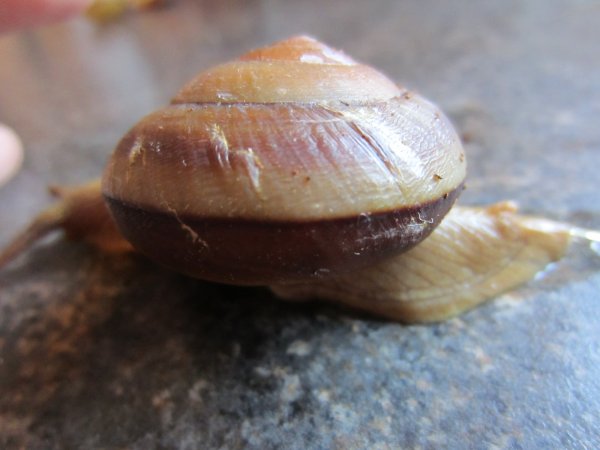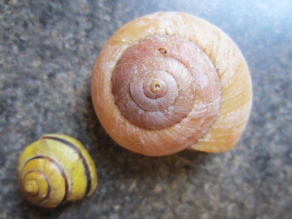 Ich hatte übrigens die anderen Schnecksaus dem Laden noch geholt, eine ist jetzt gestorben. Immerhin sagt mir das folgendes: Das Häuschen is seitlich erst ab 4.Windung rund, davor hat es einen spitzen Winkel, innen ist es mit einer weisslichen perlmuttartigen Schicht ausgekleidet, es ist recht durchscheinend und wirkt ohne Schnecke viel heller und zumindest dieses hier hatte das 2.Band doch schon, ab 4.Windung.Eine ist kleiner, könnte also noch eines bekommen, eine hat ein zweites breiteres, etwas helleres und nicht so scharf abgegrenztes.Mit dem Originalbild ist es wie mit den anderen: sieht irgendwie anders aus, als die Schalen der heutigen Sammlungen.Wahrscheinlich werde ich sowieso irgendwann aufhören müssen zu suchen...solange bis ein junger Wissenschaftler kommt ,der Ordnung in dieses Chaos bringt