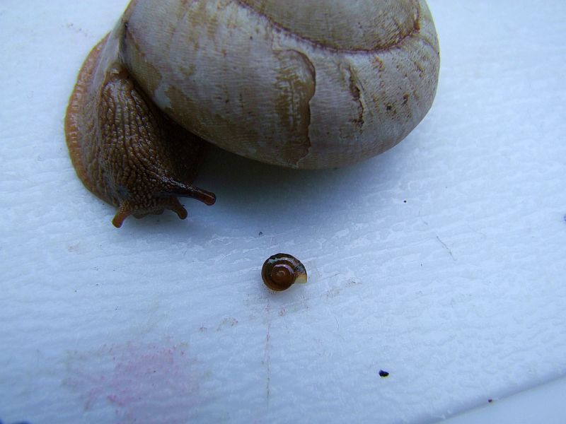 Beim Schlupf haben sie gerade mal 2mm Durchmesser.Ich hatte jetzt nicht mitbekommen, ob die Babys oder die Großen alles verschmähen und nur das Hundefutter nhmen...bei den Babys würde ich denken, dass das normal ist...auch A.Fulica-Babys futtern anfangs nur Weniges, nach und nach mehr Verschiedenes. Meine Lütten futtern sichtbar nur Flockenfutter. Was die Großen betrifft:Jaaa, krüsch sind sie, was das Futter betrifft...Einiges verschmähen sie immer, Manches nehmen sie aber endlich doch an. Spannende Tierchen...