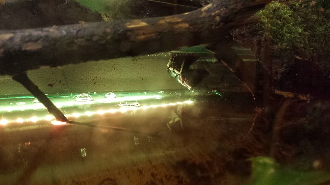 Die Jungtiere hab ich im Moment in einem separaten Terrarium wo sie wunderschön aufwachsen. Die frisch geschlüpften Tiere bleiben oft länger als eine Woche im Boden. Beim ersten Rundgang ist bis jezt nur ein Jungtier ins Wasser gefallen.