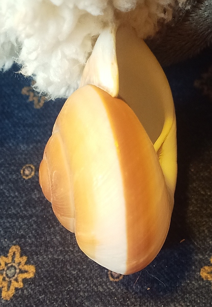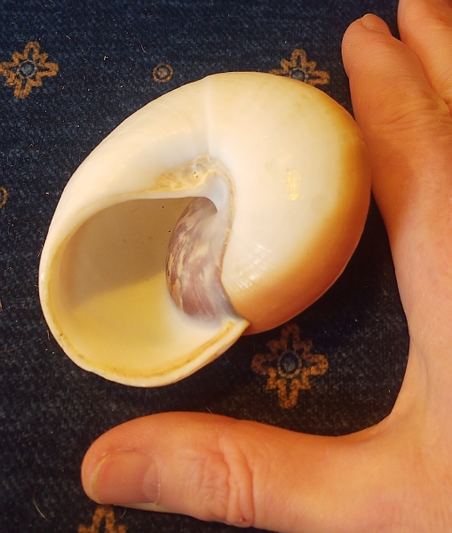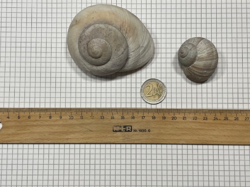 Google hat mich leider nicht weiter gebracht. Kann mir jemand sagen, was ich da heute am Wegesrand gefunden habe? Etwa 8cm Durchmesser. Dagegen sieht eine normale Weinbergschnecke winzig aus.