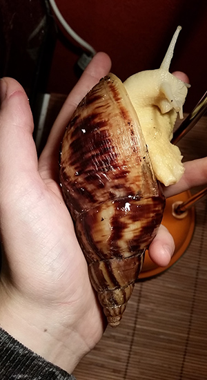 Beim Futter zubereiten lag er auf meiner Hand, noch so halb im Häuschen verweilend und als er sich bewegte machte es plötzlich knack!