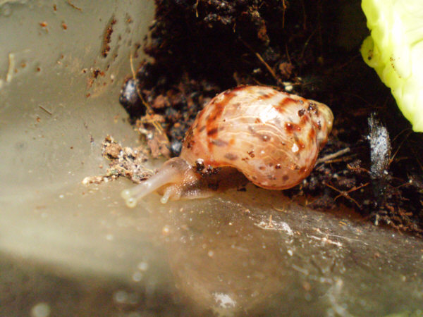Heute ist mir aber aufgefallen, dass die eine schnecke nur einen großen Fühler (mit auge) hat. Am Kopf erkennt man aber auch nicht viel, nur einen winzigen punkt. also es sieht nicht so aus, als ob der fühler einfach eingezogen ist, sondern als ob er von geburt an fehlt...Die schnecke (die jetzt den einfallsreichen Namen Pirat trägt) ist aber munder, frisst viel und ist auch schon ca 7cm groß. also wenn es von geburt an ist, wird es ihr wohl nichts ausmachen.