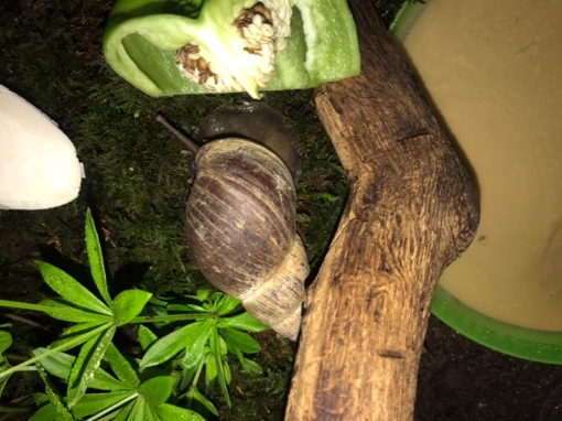 Die Schnecken sind ca 2 Jahre alt, bei mir geschlüpft und bisher geht es ihnen egtl -von außen betrachtet-gut. Sie fressen normal, alles Mögliche, was an Gemüse, Salat, Kräutern v draussen so anfällt.