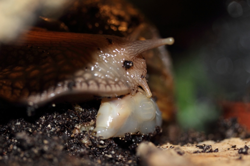 Aber, und das ist das wichtige, dabei habe ich festgestellt, dass es zwei verschiedene Arten von Eingeweidevorfällen geben zu scheint: Vorfall durch den Mund und Vorfall am Mantel vorbei (dann hängt der Eingeweidesack unten aus dem Gehäuse). In allen Fällen, in denen eine Schnecke einen Eingeweidevorfall am Mantel vorbei hatte, ist sie innerhalb kurzer Zeit gestorben. In den Fällen, in denen die Tiere den Eingeweidevorfall durch den Mund hatten, haben sie aber oft überlebt. In so einem Fall also besser erstmal noch hoffen und nicht gleich erlösen!