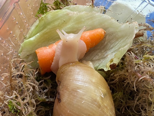 Hier vom kleinen Terrarium Bilder. Eine der 4 Schnecken lebt momentan in einer Heimchenbox. Es ist so dass 9 Schnecken von einer Bekannten selbst gezüchtet wurden und eventuell einen Gen- Effekt haben könnten, da bisher alle bis auf eine von ihr verstorben sind.Die später gekauften 3 sind allerdings gesund.
