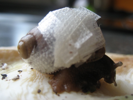 Meine fulica WJ hat sich ein Stück aus dem Haus gebrochen, ich denke bei einem Sturz aber es wächst einfach nicht gut nach und ich weiß einfach nicht woran es liegt. Sie hatte sich früher mal ein viel größeres Sütk heraus gebrochen und es war in null komma nix wieder zu gewachsen. Hier mal ein Foto: