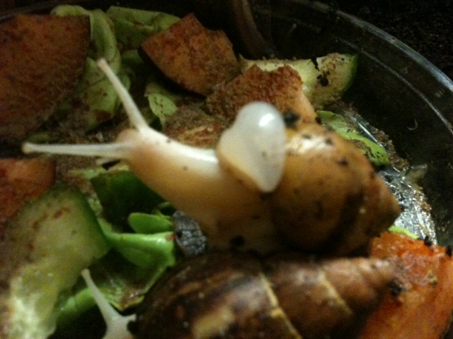 Ich halte nun seit ca 3 Monaten 6 Achatina fulica in einem 112l Aquarium (80x35x35 glaub ich). Vor drei Tagen kamen noch mal 4 dazu (zwei Wj und zwei Vollalbinos).