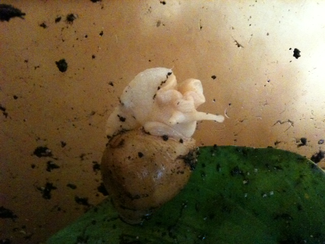 Es sieht aus als hätte sich die Columella bei ihr gelöst! Sie verhält sich nicht auffällig, frisst wie die anderen und bewegt sich auch ganz normal.