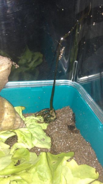 Ich wollte gerade frisches Futter und Wasser bereit stellen und da sehe ich dieses komische langgezogene Etwas, am unteren Ende definitiv Kot - ist das ein Wurm?