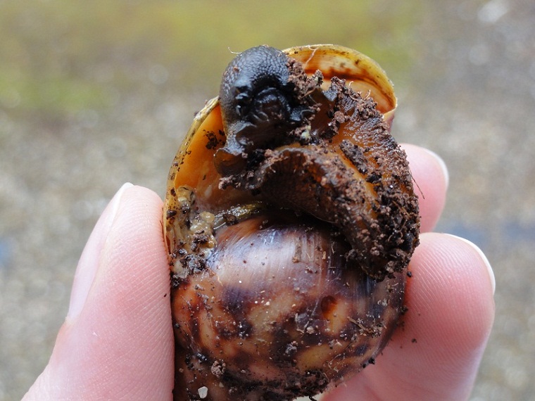 Gerade wollte ich nach meinem Kindergarten schauen (diverse kleine Archachatinas), mache die Schiebetüre beim Futternapf auf und wundere mich, warum ein kleines Schneckchen so merkwürdig da sitzt und sich kein bisschen bewegt. Die Farbe des Fußes hat mich auch etwas irriert, er war viel dunkler als sonst. Ich habe sie angestupst und bin erschrocken - der ganze Fuß war knall hart. Als ich sie rausgenommen habe, bemerkte ich dann auch den leicht merkwürdigen Geruch. Sie ist also tot, aber warum? Bisher kannte ich nur tote Schnecken, die komplett ins Haus zurückgezogen waren, aber das Kleine ist mit dem ganzen Körper draußen.