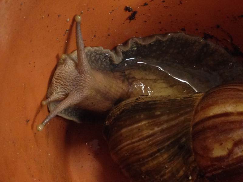 ich habe eine Frage an die Experten: Seit einigen Tagen verkriecht sich unsere Schleimerella nur noch in ihrem Blumentopf. Ab und zu setz ich sie ins Waschbecken um die Schneckenkacke sauber zu machen (es waren auch schon vermehrt kleine Fliegen dran). Nach dem Baden scheint sie erstmal kurz aktiv zu sein, verkriecht sich dann allerdings wieder. Ich leg ihr die Gurke schon immer genau davor damit der Weg nicht so weit ist.