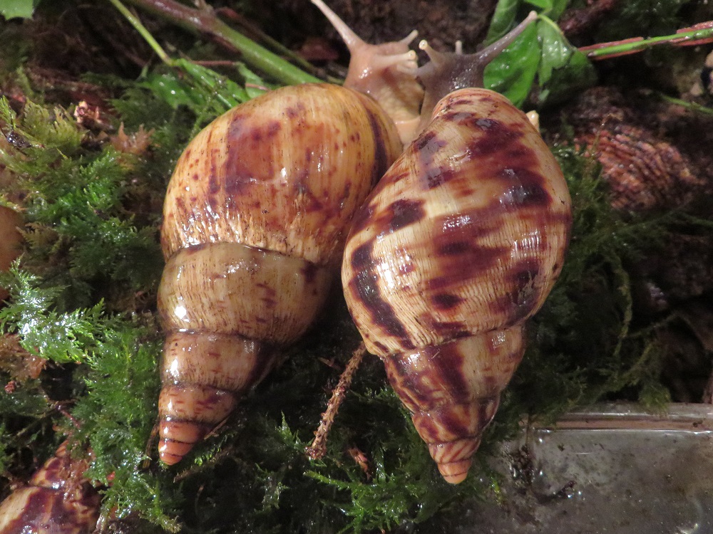 Die anderen drei gesunden Schnecks sind inzwischen riesig und beschmeißen mich seit dem Sommer mit Gelegen. Die vierte ist gegen die anderen sehr klein, noch nicht geschlechtsreif und recht inaktiv. Ich schätze, das ist auch ein bisschen "Selbstschutz", da das Gehäuse durch die Wachstumsstörung an der Naht einfach nicht mehr mitwächst und die Schnecke gut daran tut, wenn sie nicht so viel futtert und wächst.