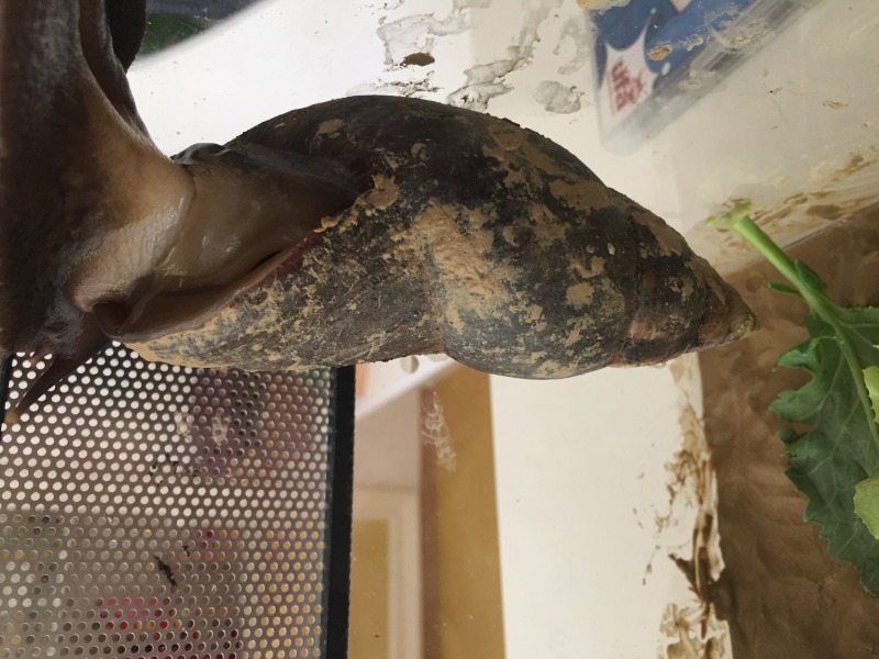 Was mich verwundert, dass sie (wenn auch nicht schön) noch an der Scheibe "pappen" kann. Das ist bei einem totalen Mantelvorfall doch eigentlich nicht mehr möglich. Da hängt die Schnecke schon sehr schlaff aus dem Häuschen, kann sich kaum.. nicht mehr fortbewegen und auch meistens in ihr Häuschen nicht mehr zurückziehen.