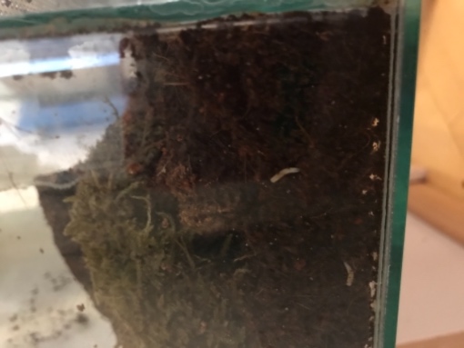 aber ich kann sie nicht einordnen. Was für Würmer könnten das sein?Sie sind ziemlich aktiv und graben einzeln herum. Manche haben einen schwarzen Kopf. Sie kleben nicht an der Scheibe sondern kraxeln in der Erde herum. Die Schnecke frisst weniger und sie hat zwei Tage davor durch geschlafen. Eine Nacht hat sie schlafend auf ihrer Sepiaschale verbracht In Moment schläft sie ganz oben am Glas im Terrarium. Ich hoffe auf die Fotos kann man was erkennen.