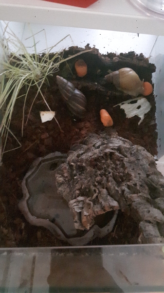 also ich halte 2 Achatschnecken ich weiß leider nicht welche Art da ich die eine aus einer Nachzucht einer meiner Schnecken habe (leider gestorben) welche wiederum von einer Freundin kam und die andere aus einer Tierhandlung.