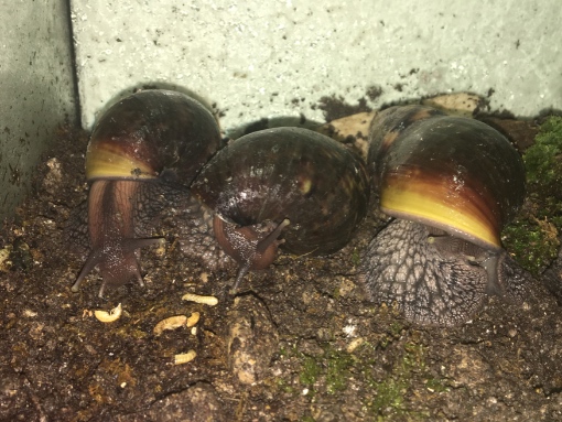 Ein Heilerdebad biete ich sporadisch an, scheint aber keine der Schnecken so gerne zu nutzen. Sepiaschale liegt eine drin, aber auch die habe ich tagelang gewässert, bevor ich sie ins Terrarium gelegt habe.