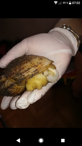 ich stimme Annette zu. Für mich sieht das auch nach innerem Organ aus. Wenn sich deine Schnecke ausstreckt, wo kommt das Etwas dann genau raus? An der Seite kurz hinter den Fühlern ( Geschlechtsteil) aus dem Maul