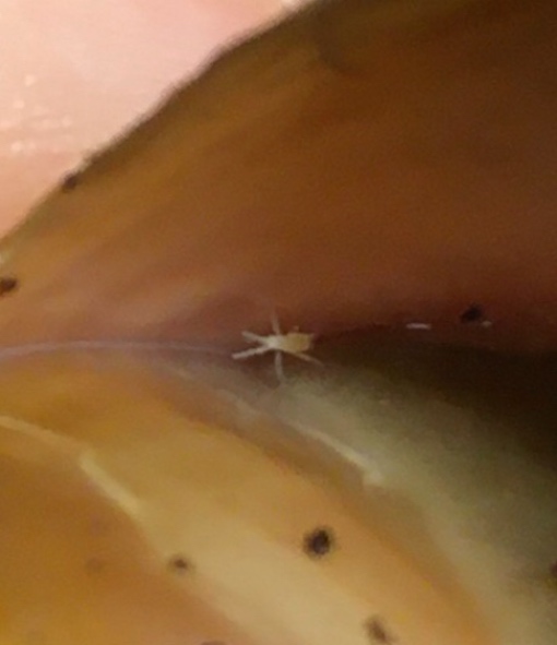 Zwar war das bisher die einzige Milbe, die ich gesehen habe, aber da die Schnecken auch kaum aus ihrem Gehäuse kommen, scheint mir ein Milbenbefall nicht zu unwahrscheinlich. Leider habe ich keine besseren Fotos von der Milbe machen können - sie war zu schnell wieder weg. Theoretisch habe ich sogar ein einfaches Mikroskop, leider ist mir das aber erst zu spät eingefallen…