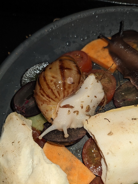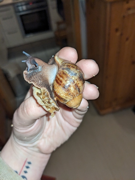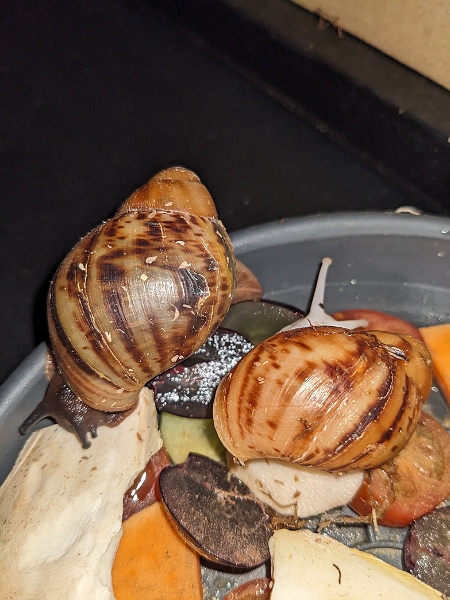 Meine drei Archachatina Marginata ovums sind seit einer Woche neu eingezogen und haben ein paar kleine Weiße Flecken/Punkte wo ich nicht genau weiß ob das Kalk ist oder ich doch irgendetwas Falsch mache.