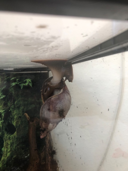 Eine meiner Schnecken ist wohl schon sehr alt. Angeblich ca 9 Jahre…(ich habe sie erst seit drei Monaten)Vorhin hing sie an der Decke und irgendwie sieht das gar nicht gut aus. Was ist hier los? Ich habe schon einiges von Mantelkollaps oder Ablösung gelesen, aber die Fotos dazu sahen anders aus. Ich hoffe, ihr könnt mir weiter helfen!
