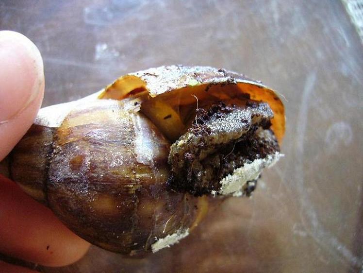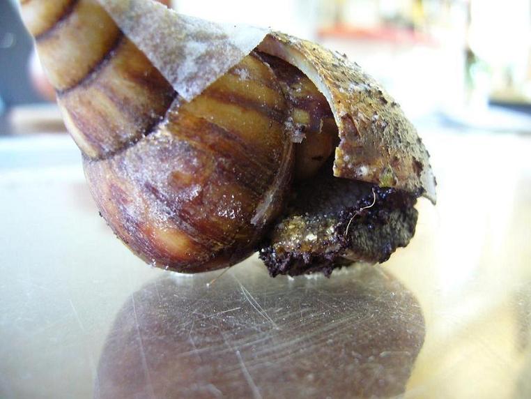 Habe die Futterschale aus dem Terrarium genommen, da es von Fruchtfliegen übersät war, ohne gross aufzupassen...na und da hab ich schwungvoll die Abfälle aus dem Fenster gekippt, denn dort steht der Kompost...nun war es mir da noch nicht bewusst, dass sich eine Achatina fulica unter dem Saltblättchen versteckt hatte