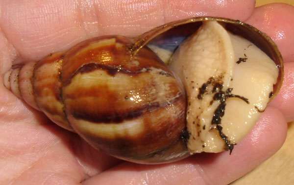 Inzwischen geht es ihr wieder gut und ich bin absolut sicher, das es an der Erde im Golliwoog Pott lag. Darin hatte sie sich verbuddelt und ich vermute das die Erde eventuell gedüngt war, was der Schnecke nicht gut getan hat.