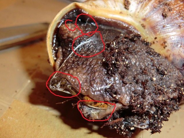 die hab ich dann vorsichtig weggemacht,, jedoch kommen immerwieder welche aus der schnecke raus.. sie sind auch NICHT auf den anderen 5 meiner Ovums.. nur diese schnecke ist betroffen. Die würmer sind ca. 4-5mm lang, von fast durchsichtig bis richtig weis. Der eine wurm ist in den Mantel der schnecke (wo sie rauskommt) verschwunden.. und ich hab das gefühl.. sie sind auch im "fleisch"...