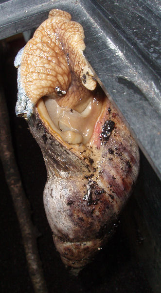 Seit einer Weile hat eine meiner A. immaculata panthera einen kleinen Klumpen am Mantel, zwischen Spindel und Gehäuse. Ich kann mich nicht daran erinnern so etwas hier schon mal auf einem Bild gesehen zu haben - jemand von euch vielleicht?