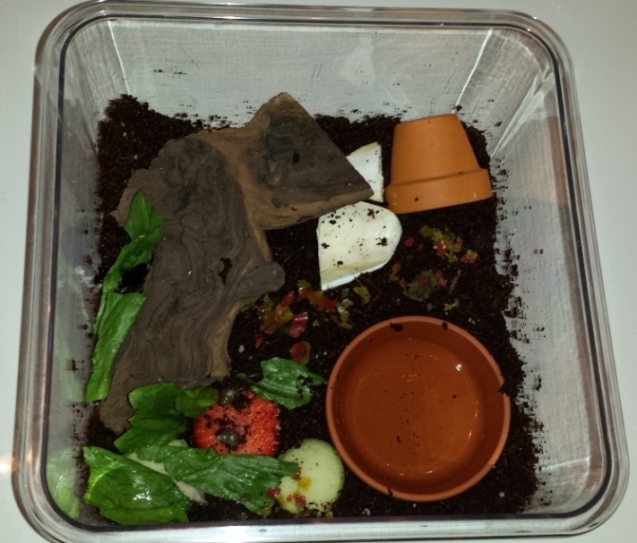 Die Box sollte anders abgedeckt werden, mit Fliegengitter entweicht zu viel Luftfeuchtigkeit. Ich würde ihnen noch ein Stück Sepiaschale hineinlegen, damit die Kalkversorgung gesichert ist. Sauren Bodengrund sollte man aufkalken.