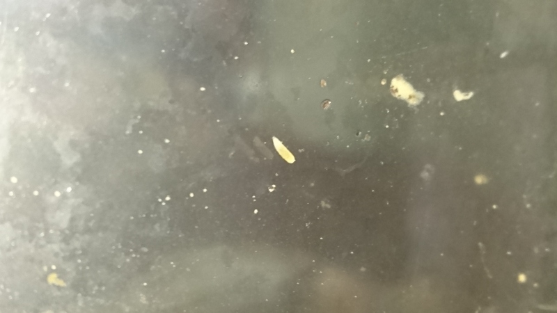 Ich habe sie damals in einem kleinen Box getan und das große gründlich gewaschen. Es sah alles eine Woche lang gut aus, also tat ich die Babys wieder in das große und tada, weitere tote und die winzigen Würmer wieder da. Also tote eingefroren und die Babys wieder in das kleine Box. Nun sieht es momentan okay da aus, aber unsicher bin ich mir trotzdem. Sie sind im warmen Exo-Terra, wo auch die Elterntiere leben. Dort habe ich solche Würmer noch nie gesehen. Im fulica-becken eigentlich auch nicht.. bis heute beim Saubermachen habe ich so 3 Stücke gefunden, wahrscheinlich sind es mehr. Ich verstehe nicht, wie sie eigentlich dorthin gelangen sind, diese Becken stehen getrennt voneinander. Vielleicht vom Futter? Eigentlich habe ich Gemüse immer gewaschen.. meine Mutter kümmert sich um sie, wenn ich für ein paar Tage weg bin.. vielleicht hat sie es nicht gründlich gemacht, ich weiß es nicht... in den 5 Jahren ist sowas mir noch nie einziges Fall unterkommen.Das war das erste tote Baby mit den Dinger, das ich gefunden habe (vor einige Wochen)