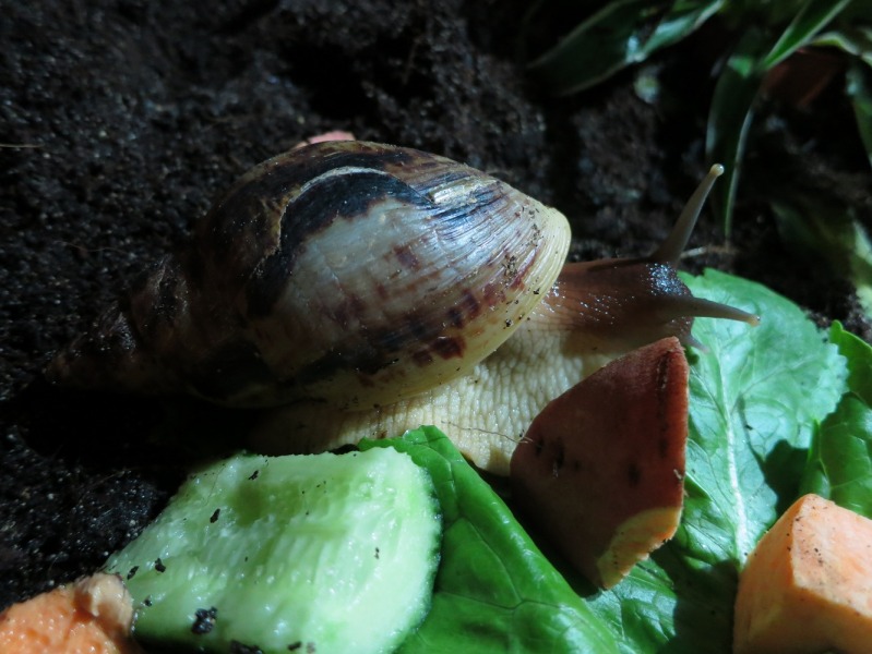 Aufgefallen ist jedoch, dass die Schnecke sehr viel in dieser Zeit gefressen hat, hauptsächlich Gemüse. Daneben sass sie zT stundenlang in einem Heilerdebad und nahm viel Kalzium über die Aufkalkung vom Boden sowie von der Sepiaschale auf. Auch wurde Löwenzahn (Kalziumreich !) bevorzugt in der Zeit gefressen.