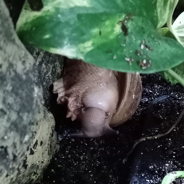 eine meiner Ovums hat nach ihrer ersten Eiablage das Verhalten geändert. Sie versteckt sich nicht mehr, wie die anderen Schnecken, sondern kriecht nur ein wenig zur Seite und schläft "auf der Seite".