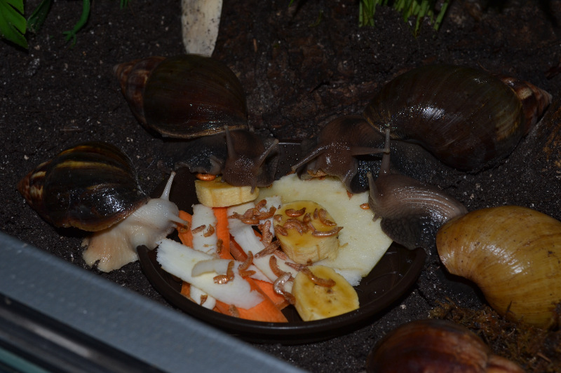 Die Parameter sind in der Norm (tags 25°C/nachts 21°C - LF: 80-90 %) und die anderen drei Schleimschnuten fühlen sich auch wohl (und tragen auch gerade Eier).