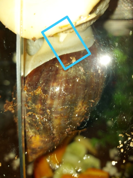 Wir haben vor 5min eine Entdeckung gemacht, die uns etwas Angst macht. Aus dem Stehgreif heraus vermuten wir, dass sich das Häuschen vom Körper löst, jedoch sehen wir sowas zum ersten Mal und hoffen inständig, dass ihr uns eine andere Botschaft geben könnt. Was meint ihr dazu? Bitte schaut euch das Foto an. Wir haben den betroffenen Bereich blau umrahmt.