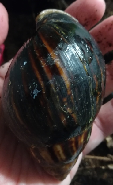 Derzeitiger Besatz: 3 Schneckis, alle ca. um die 185 g schwer, die Kleinste mit 122 g ist gestorben und ca. 12 cm Gehäuselänge. 1 Baby dzt. 7 mm groß, frisst brav und bleibt immer in der Nähe des Baumstammes.