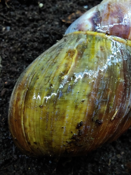 Interessant wäre, ob das Gehäuse deiner Schnecke so grün ist, oder ob es ein Belag ist, der sich entfernen lässt. In den älteren Forenbeiträgen ist es wohl wirklich das Haus selbst.