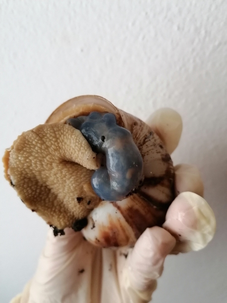 Es gab einige Fälle, wo man beginnende Eingeweidevorfälle damit löste, den Sack, der rauskommt, mit einer Nadel aufzupieksen, die Schnecke konnte das Gewebe dann wieder 'einsaugen'. Aber das sieht schon irgendwie... anders aus. Ich würde da nicht reinstechen, wenn ich nicht genau wüsste, was es ist.