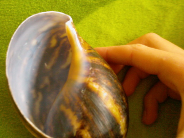 Die Columella ist orange, doch ist diese Zeichnung nicht etwas unnormal? Im Ausschnitt "diese Zacken" ist den denn normal bei ovums ? Das Haus ist 13 cm lang. Und relativ spitz,find ich ...