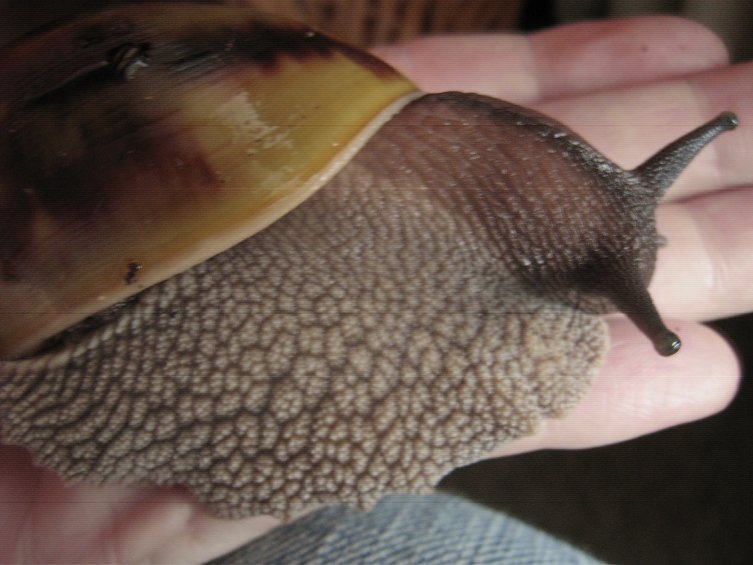 Und zwar habe ich ein Jungtier, welches von Anfang an einen hellen Fuß hatte und ein honigfarbenes Haus mit schönen dunklen Streifen. Nun dunkelt der Fuß etwas nach, von grau- rosa auf eher bräunlich- beige und das Haus verliert seine dunklen Streifen.