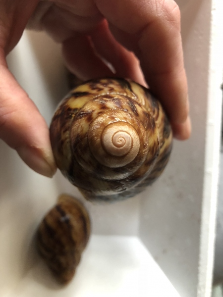 Aber die neuen drei sehen mir im Vergleich zu den beiden Fulicas so gar nicht nach dieser Art aus, aber auch nicht nach Retis. Sie haben keine Rillen, Häuschenform ist mehr rund als langgezogen. Die Columella konnte ich nicht fotografieren, sie waren nicht sehr kooperativ. Sie ist aber ganz pastell rosafarben. Der Apex ist gelblich und im Vergleich zu den Fulicas ganz flach.