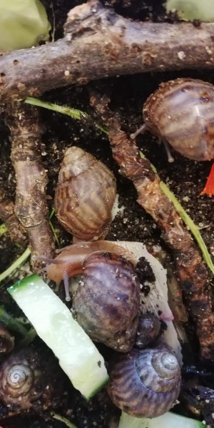 Gerne gebe ich die Info weiter! Sie hatten ursprünglich nur eine Schneckenmama. Die wird jetzt so circa 8 cm groß gewesen sein. Hab sie nur kurz gesehen, da sie sich eingebuddelt hatte und auch das Häuschen verschlossen hatte.
