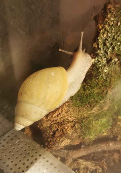 wir haben vor ein paar Wochen ein Schnecklein geschenkt bekommen. Bisher dachte ich immer dass es eine Achatina fulica ist, allerdings hat sich die Schnecke jetzt zur Winterruhe zurückgezogen und eingedeckelt (leider habe ich sie dabei gestört, weil ich nach einer Woche in der ich sie nicht fressen gesehen habe mal ausgebuddelt habe, weil ich gelesen hatte dass A. fulica nur weniger aktiv wird aber nicht komplett schläft).