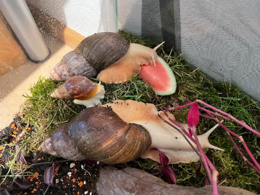 Ich habe drei Achatschnecken zu meinem Abschluss in der Kita bekommen, da ich schon lange mal welche haben wollte. Dies war jedoch nicht sofort geplant, doch nun sind sie hier und ich möchte mich richtig um die drei kümmern um ihnen gerecht zu werden. Ich fange von sehr wenig Wissen an und bin bereit alles neue zu lernen und umzusetzten.