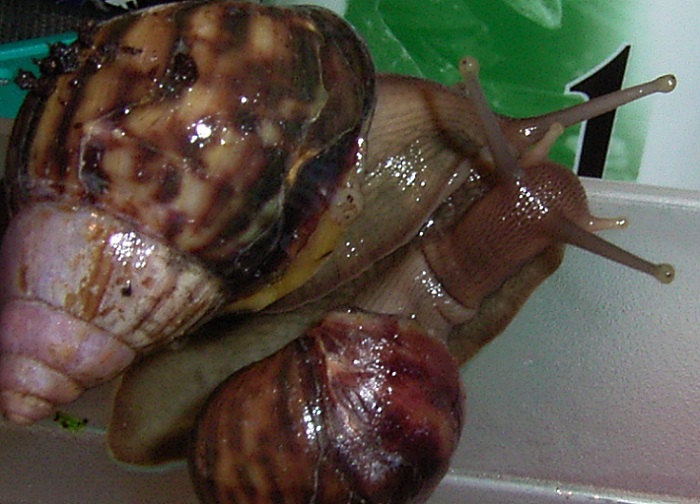 Es stellte sich herraus das es drei Adulte Schnecken und etwa 25 Jungtiere mit teils starken Wachstumsstörungen handelte, da ihnen im Terrarium schon Monate lang kein Kalk angeboten wurde.