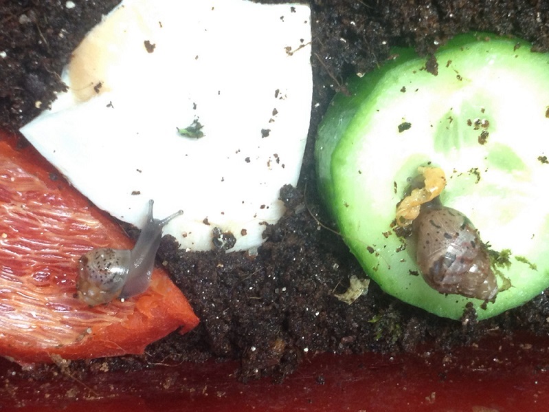 ich bin seit 4 Wochen stolze Besitzerin von 2 Achatina fulica. Von einem Züchter bekamen wir 6 Eier, da wir den gesamten Zyklus der Schneckenentwicklung beobachten wollten. Leider sind nur 2 der kleinen geschlüpft aber diese entwickeln sich prächtig und futtern wie die Weltmeister.