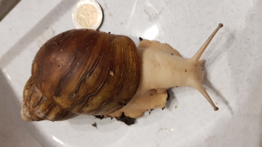 Der cremefarbene Körper und die dunklen Fühler sind dort deutlich zu erkennen.Zurück zu Achatschnecken - Artenspezifisches und Bestimmung